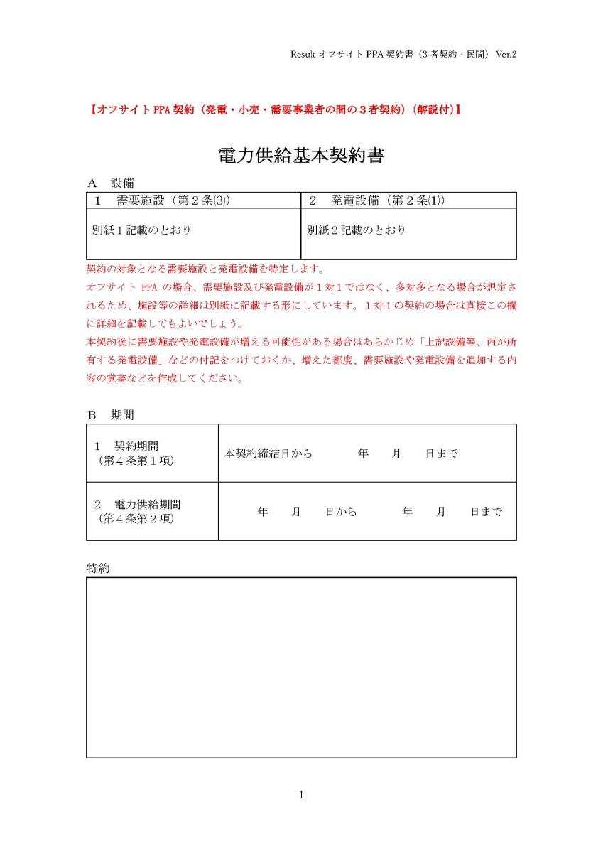 1.オフサイトPPAモデル契約書(3者間契約版)Ver2